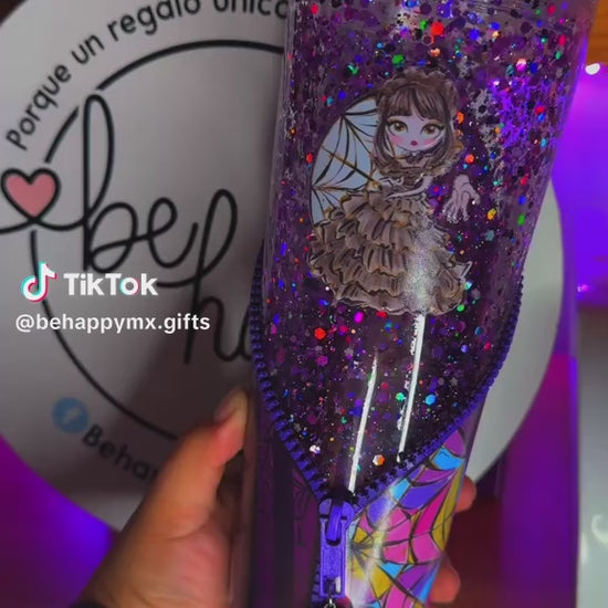 Vaso Acrílico Zipper Snow Globe M. Addams (Glow in the dark)
