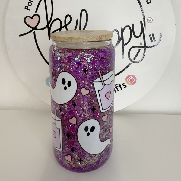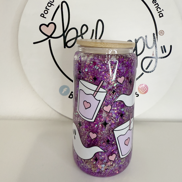 Vaso de acrilico de 16 oz con tapa de bambú fantasmitas y cafecito